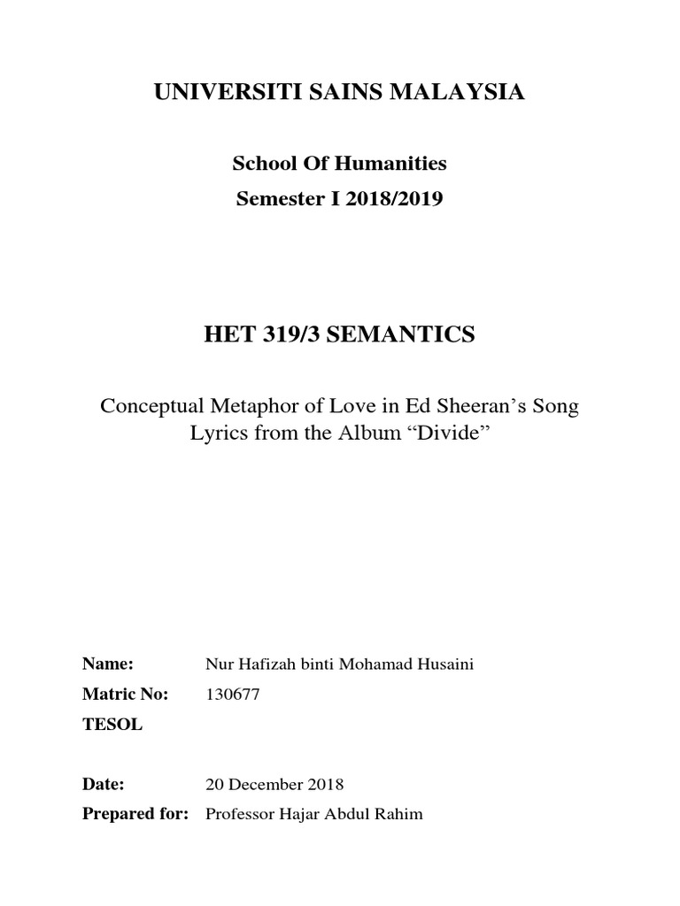 Conceptual Metaphor In Ed Sheeran S Song Metaphor Concept
